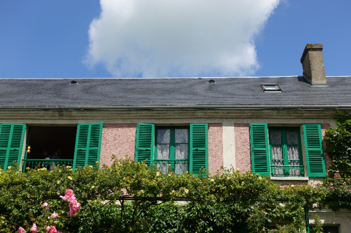드디어 모네의 집 창문이 보이고 현관 그리고 잠시 쉬며 사유에 빠지기도 했던 벤치가 보입니다.